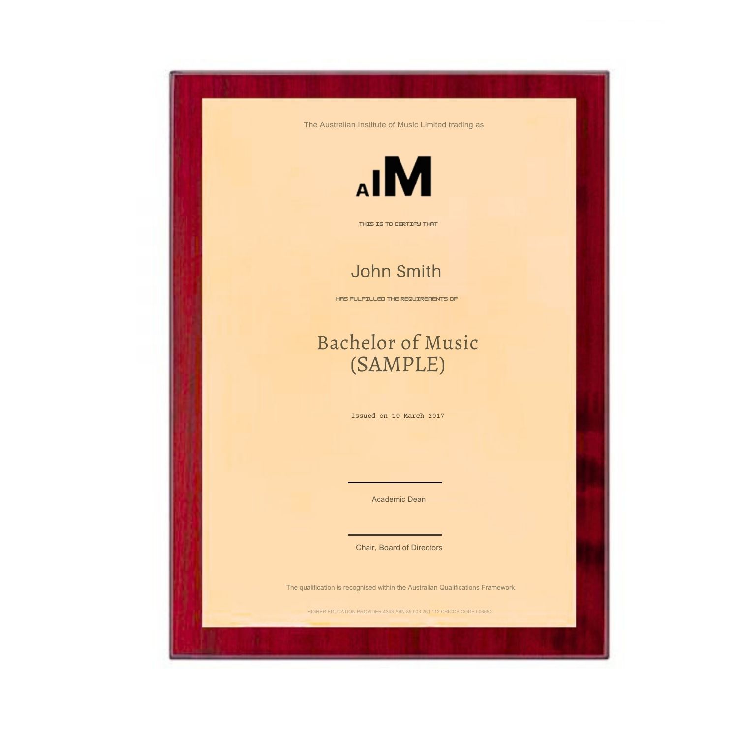 Rosewood Plaque-ASA Institute of Higher Education